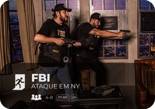 Podemos trabalhar das duas formas, só será necessário entender o escopo do seu projeto. Nossas principais formas de pagamento são através de depósito em conta, cartão crédito ou faturamento. Não, cada unidade de São Paulo possui suas próprias atrações. Caso se trate de uma unidade franqueada, as atrações poderão ser iguais às de São Paulo. No caso de reservas corporativas, os diferenciais são os adicionais que oferecemos, dependendo da unidade escolhida pela empresa, tais como: – Coffee-break, almoço/jantar e happy hour; – Espaço para confraternização ou reuniões antes ou após a dinâmica; – Parceria com empresa de consultoria para fechamento ou análise de grupo (Debriefing ou MAPPE); – Visualização do grupo em jogo dentro de nossa sala de monitoramento. Sim, o que muda são as condições de pagamento e os adicionais em reserva. É o item referente ao salão ou espaço que disponibilizamos para reuniões e confraternizações. Nossos jogos têm duração de até 60 minutos. Nesse caso pode haver variação, de acordo com o escopo do evento, sendo de no mínimo 10 minutos e no máximo 60 minutos.